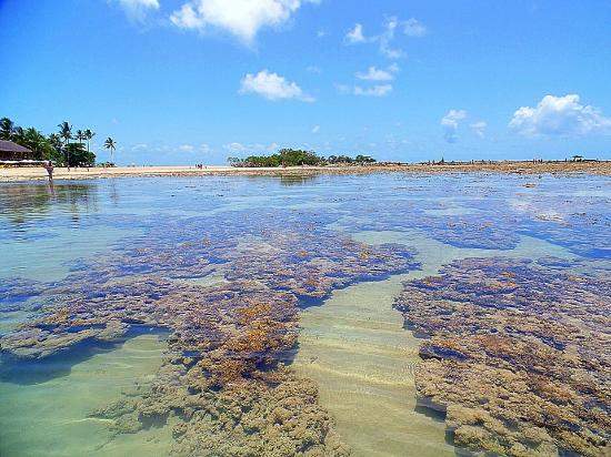 As piscinas naturais formadas na maré baixa desta praia são bem rasas e com águas bem quentes, ideal para se aproveitar com crianças.